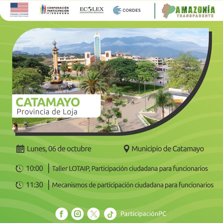 Una jornada de capacitación sobre la importancia de Ley de Acceso a la Información Pública (LOTAIP) y sobre los Mecanismos de Participación Ciudadana vigentes en Ecuador, realizamos el el lunes 6 de octubre de 2025 en el cantón Catamayo de la provincia de Loja, al sur del país.
