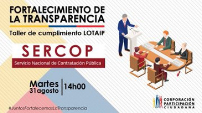 El 31 de agosto, el equipo técnico de Corporación Participación Ciudadana (PC) capacitó a los funcionarios del Servicio Nacional de Contratación Pública (SERCOP) en el cumplimiento de la Ley Orgánica de Transparencia y Acceso a la Información Pública (LOTAIP).