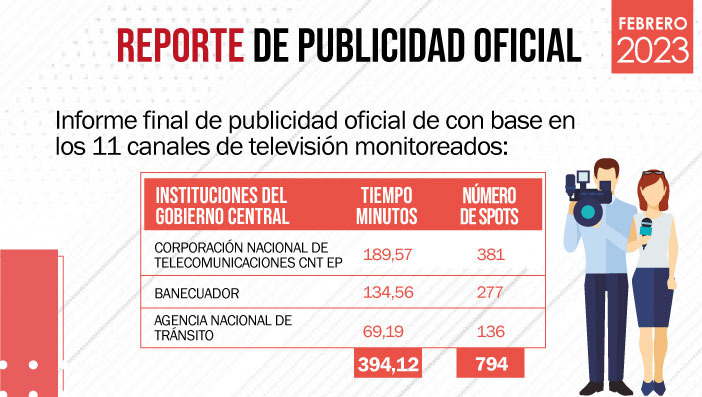 El Centro de Monitoreo de Medios de la Corporación Participación Ciudadana presenta el informe de publicidad oficial, correspondiente al mes de febrero de 2023, con base en los 11 canales de televisión monitoreados: