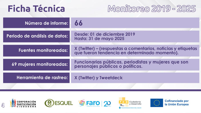 La Corporación Participación Ciudadana presenta el reporte de monitoreo sobre violencia política, contra las mujeres políticas y que desempeñan cargos de relevancia, desde el 1 de diciembre de 2019 hasta el 31 de mayo de 2025.