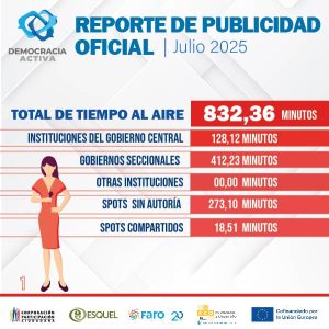832 minutos en Publicidad Oficial se difundió julio de 2025 en TV