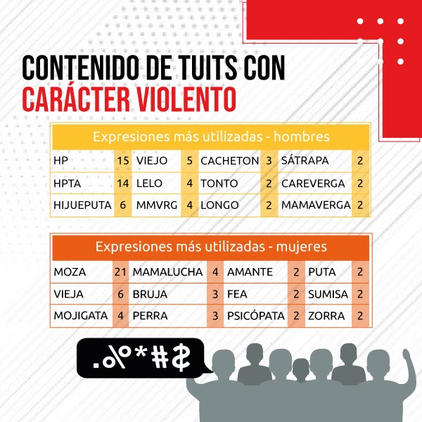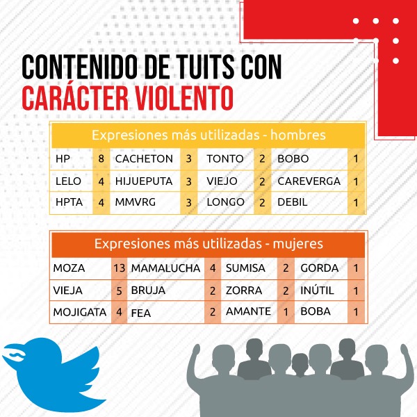 En total, se contabilizaron 167 tuits; con 60 expresiones, con contenido discriminatorio; y 51 frases del mismo tipo, durante todo el periodo de monitoreo