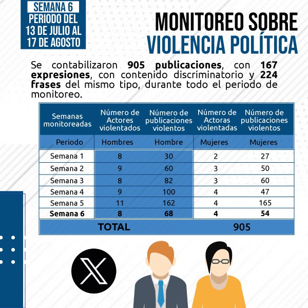 Durante este tiempo, se monitoreo publicaciones de 25 candidatos/as (mujeres 11;hombres 14); entre ellos, candidatos presidenciales, vicepresidenciales y asambleístas principales.