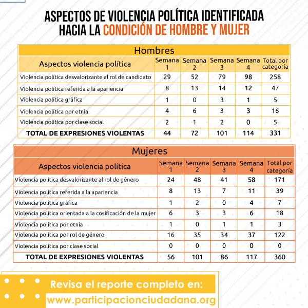 En la semana 4 de campaña, se registró que las y los candidatos/as que fueron monitoreados, a través de sus cuentas de Twitter, fueron víctimas de manifestación de violencia, mediante “memes”, imágenes, expresiones y frases en esta red social.