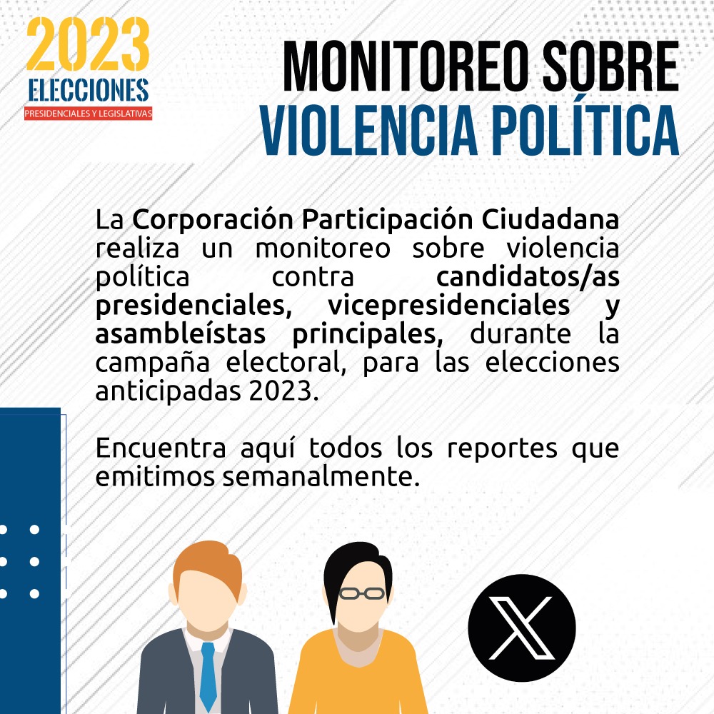 La Corporación Participación Ciudadana presenta el siguiente reporte de monitoreo sobre violencia política, contra candidatos/as en campaña electoral, durante las elecciones anticipadas 2023, desde el 13 de julio al 13 de agosto de 2023.